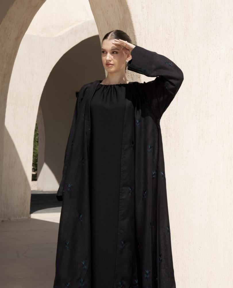 اللون: اسود وتطريز كحلي