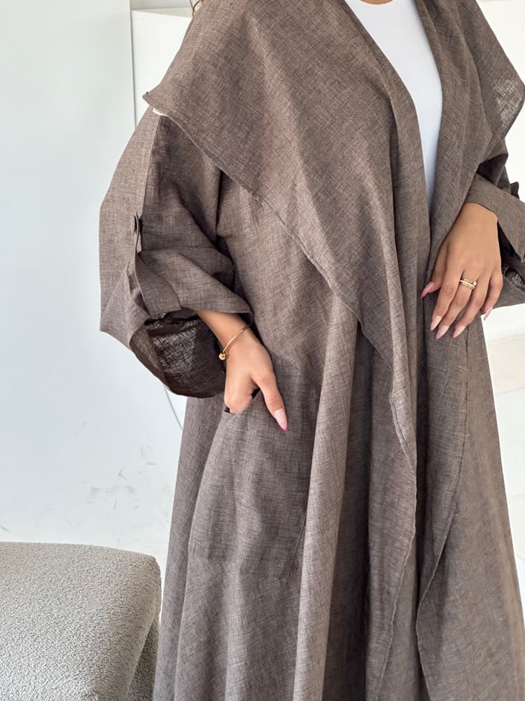 قصة العبايه كلوش يوجد أيضًا جيب من الجهتين 🤎